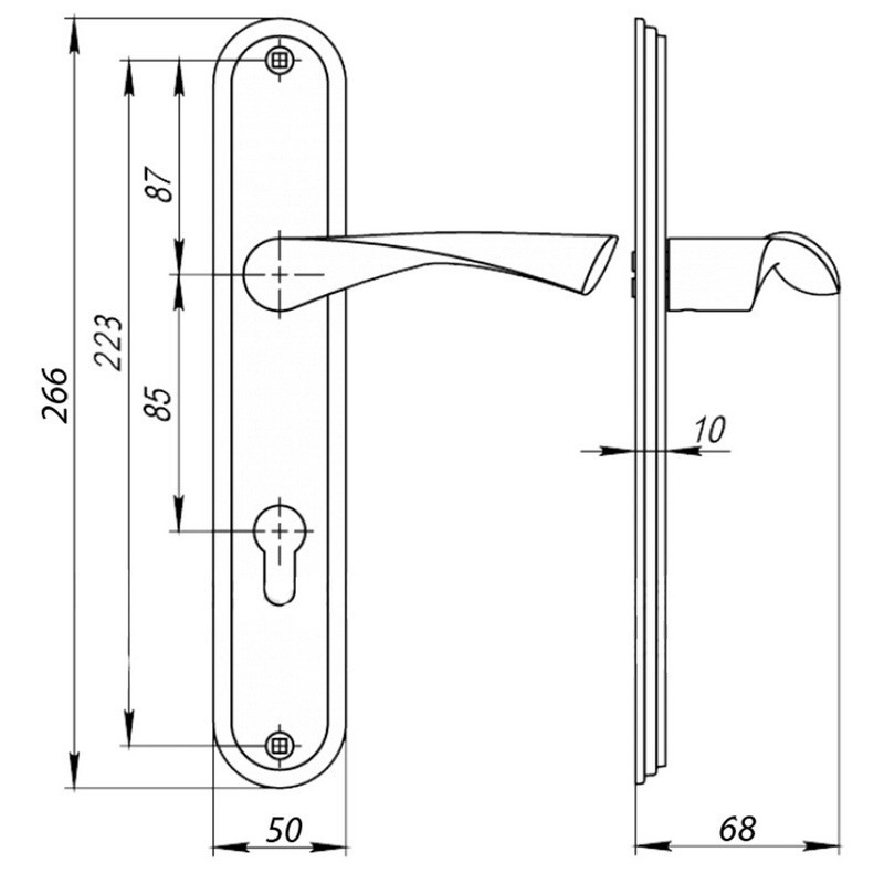 Ручки для металевих дверей 85-112 (для замка 252R) CP (полірований хром)
